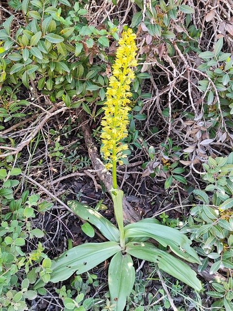 Day 3, Friday, started at an even bigger and better bakery which sold more delicacies, including freshly squeezed orange juice for our picnic. Because of strong wind in the mountains, we went south to Akrotiri. There were lovely sea views along the road and we saw chalk falling down the cliffs into the sea at Aphrodite’s birthplace. There we found Erodium crassifolium, Fagonia cretica, Taraxacum aphrogenes and Scorzonera alpigena. In the forest near the sea in the British military area, we met a man who was in charge of the local environment and complained of alterations to a local road which had damaged some precious plants. We then continued on our way to the salt lake, stopping at Episkopi forest where we saw Juniperus phoenicia, Cypressus sempervirens, Pinus brutia and Cistus salviifolius. We arrived at the salt lake and found saline garigue with Helianthemum stipulatum, Alkanna tinctoria and a few orchids. Our picnic lunch was taken at a meadow with Anemone coronaria, Ranunculus asiaticus and several new orchids. We saw Ophrys flavomarginata, O. sicula, O. kotschyi (a signature endemic of Cyprus), O. umbilicata and Anacamptis syriaca. On the bird list were two lonely Greater Flamingos and we photographed a lovely yellow butterfly.